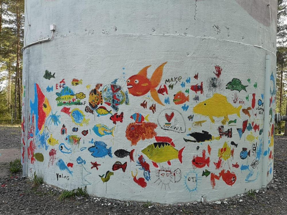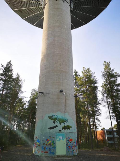 Haukiputaan vesitorni sai väriä kylkiinsä pienten taiteilijoiden toimesta, kun vesitornin ympärillä järjestettiin Tornikarnevaali-tapahtuma.